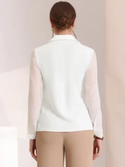 - This blouse is made up of several design points: Mesh Long Sleeve, V Neck, Peplum Ruffle Hem, High Waist with Belt Party Sheer Blouse