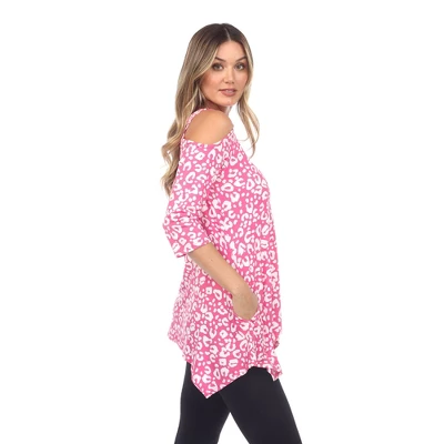Bring vibrant energy into your wardrobe with this multi-color polyester and spandex top. The pattern and rich colors introduce a sense of fun, and the tunic design flows out from the bottom for comfort. Features a cold shoulder cut, ¾ sleeves, functional side pockets and shark bite hem. The available larger sizes make this top perfect for the plus-size woman.