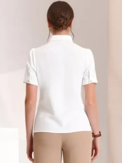 Allegra K Women’s Elegant V Neck Work Office Button Up Shirt