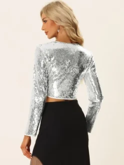 Allegra K Women’s Long Sleeve V Neck Sparkly Shiny Party Blouses