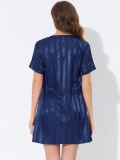 Cheibear Womens Sleepwear Pajama Dress Lounge Short Sleeve Striped Nightgown