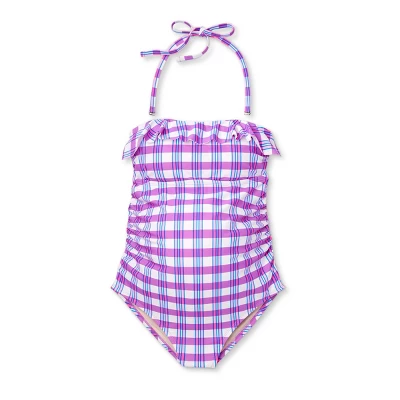 Add beautiful checks to your maternity swim looks with the Bandeau One-Piece Maternity Swimsuit from Isabel Maternity by Ingrid & Isabel™. This one-piece maternity swimsuit features a gingham pattern in white, blue and purple along with ruffle detailing for an appealing look. The ruching helps accommodate your growing bump, while the removable straps bring added convenience. Designed with a soft and stretchy fabric, this gingham maternity swimsuit offers comfort and the right coverage with the sewn-in cups.