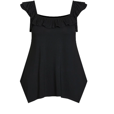 Flatter your curves to perfection in the versatile Serena Top. Scene-stealing and charming, this style offers a scoop neckline with ruffle trim overlay, short layered ruffle sleeves, and a breezy stretch knit fabrication. Casual and effortless, Evans makes everyday style oh-so-easy. This beloved English brand offers quality, curve-loving pieces for any occasion that will make you look and feel your best. From easy-going dresses to statement essentials, Evans is comfortable, tasteful and perfect for your everyday wardrobe. Available in sizes 14 – 32.